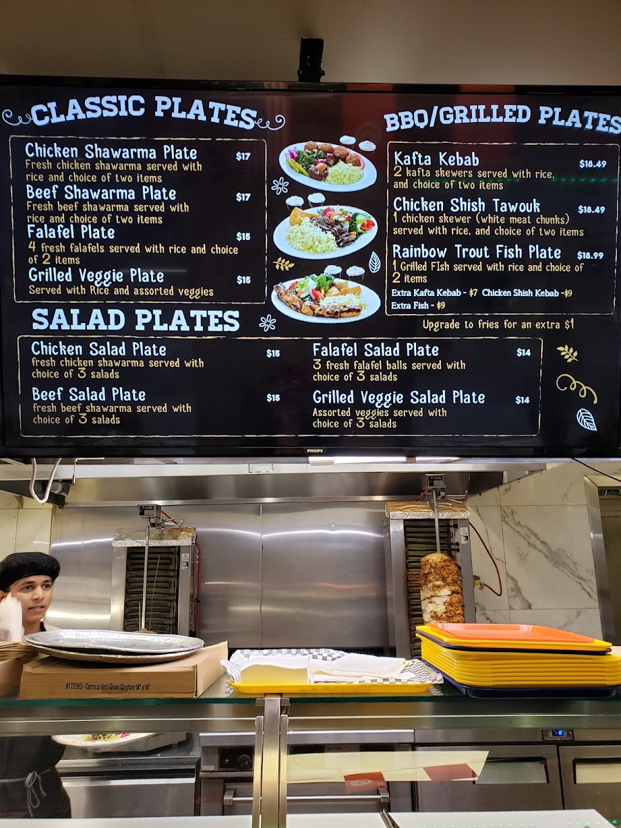 Discover the vibrant flavors of Lebanon Express - Toronto, located at 439 Yonge St, where culinary tradition meets contemporary dining. The menu is a delightful array of Lebanese classics, offering plates like the juicy Chicken Shawarma and the savory Kafta Kebab, both accompanied by rice and a selection of two sides. Vegetarians will appreciate the satisfying Falafel Plate and refreshing salads such as Fatoush and Kale Apple.